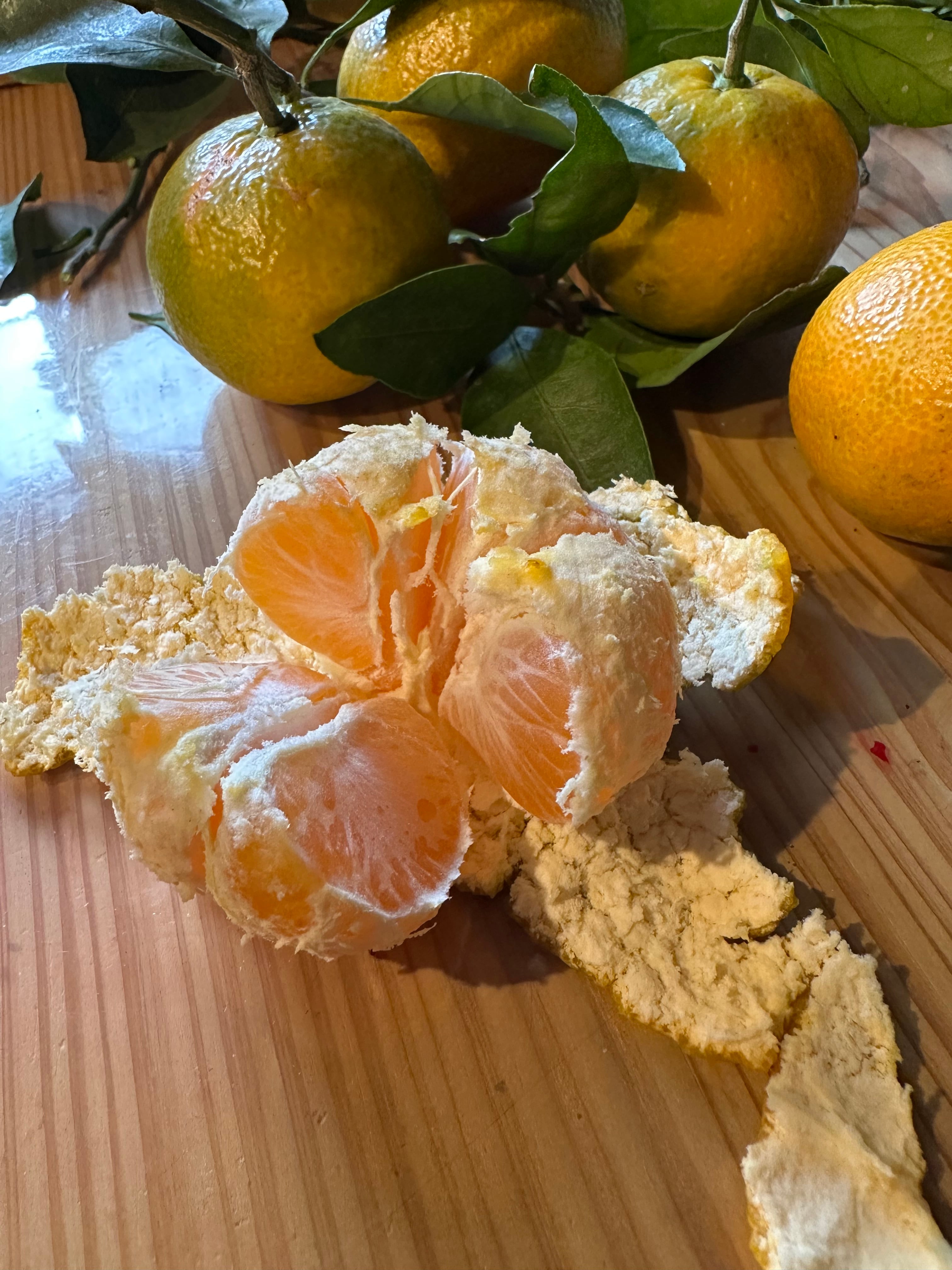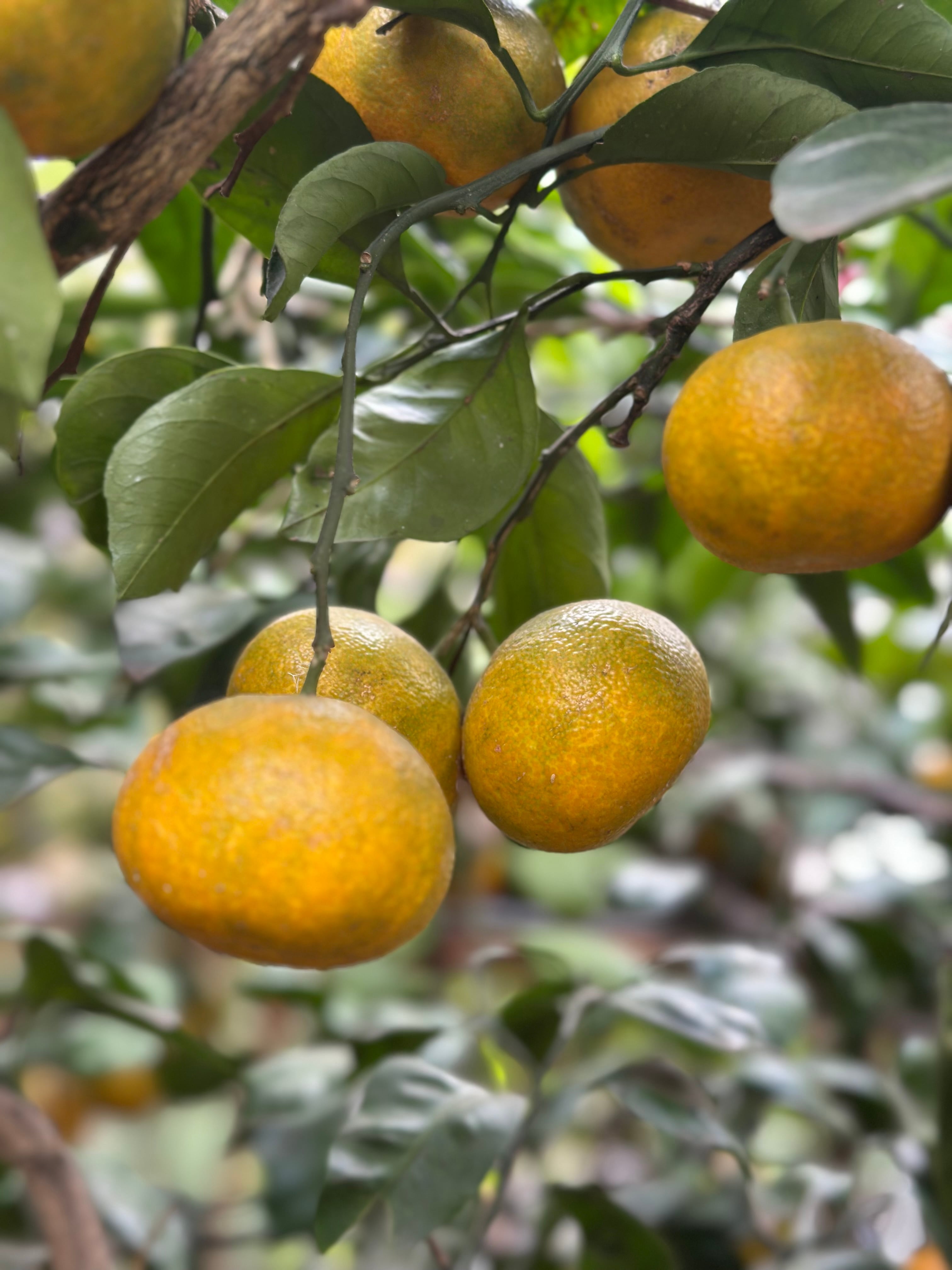 5年前は酸っぱかった木でしたが、隣に鶏小屋を建ててから急に甘くなったみかんたちです。栄養とお日様をたっぷり浴びて甘く育っています。