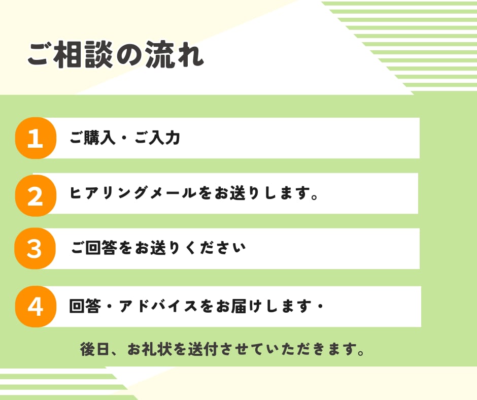 いただいた内容をもとに、正確な回答を行うため、こちらからいくつか質問をメールでお送りします。